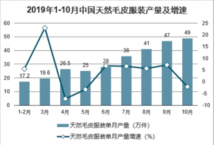 2019年1-10月中國天然毛皮服裝產(chǎn)量及增速