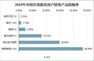 2019年中國(guó)在線教育用戶使用產(chǎn)品的頻率
