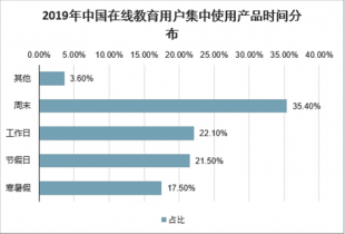 2019年中國(guó)在線教育用戶集中使用產(chǎn)品時(shí)間分布