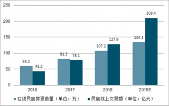 2016-2019年中國在線民宿房源數(shù)量及民宿線上交易額(單位:萬)