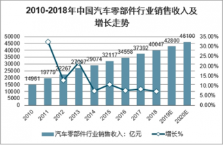 2010-2018年中國(guó)汽車零部件行業(yè)銷售收入及增長(zhǎng)走勢(shì)