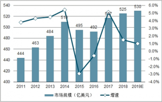 2011-2019年全球IC封裝測(cè)試業(yè)的市場(chǎng)規(guī)模及預(yù)測(cè)
