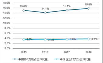 圖表:2015-2019年中國企業(yè)信息化市場占全球份額比較