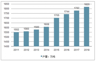 2011-2018年中國辣椒產(chǎn)量情況