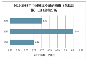 2016-2018年中國鮮或冷藏的辣椒(包括甜椒)出口金額分析