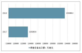 2017年我國焊接設備出口額為123260.6萬美元,2018年我國焊接設備出口額為133288.2萬美元,同比增長8.14%。