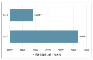 2017年我國焊接設備進口額為40674.2萬美元,2018年我國焊接設備進口額為38908.7萬美元,同比下降4.34%。