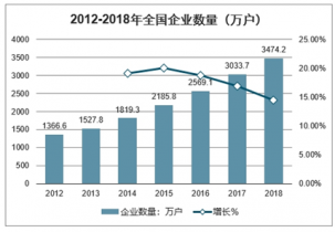 2012-2018年全國企業(yè)數(shù)量(萬戶)