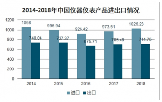 2014-2018年中國儀器儀表產(chǎn)品進(jìn)出口情況(億美元)