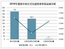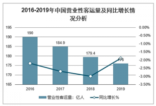 2016-2019年中國營業性客運量及同比增長情況分析