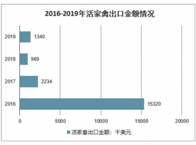 2016-2019年活家禽出口金額情況