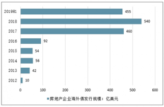2012-2019年中國(guó)房地產(chǎn)企業(yè)海外債發(fā)行規(guī)模(單位:億美元)