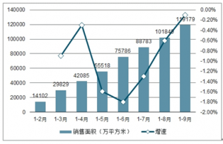 2019年1-9月中國(guó)商品房銷售面積及增速趨勢(shì)