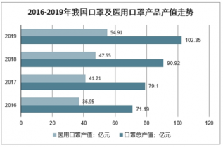 2016-2019年我國(guó)口罩及醫(yī)用口罩產(chǎn)品產(chǎn)值走勢(shì)