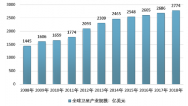2008-2018年全球衛(wèi)星產(chǎn)業(yè)規(guī)模 |