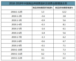 2018-2019年中國商品房銷售面積及銷售金額增速走勢