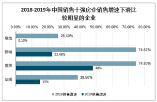 2018-2019年中國銷售十強房企銷售增速下滑比較明顯的企業