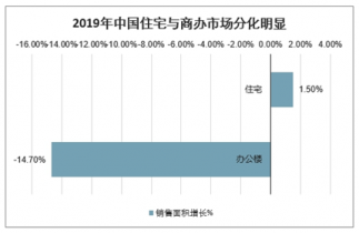 值得注意的是,16萬億銷售額中,住宅與商辦市場分化明顯,商業地產持續量縮。就銷售面積而言,2019年住宅銷售面積增長1.5%,而辦公樓銷售面積下降14.7%。