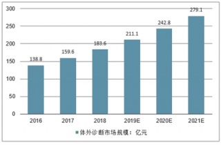 截止到2017年我國體外診斷市場(chǎng)規(guī)模達(dá)到了159.6億元,預(yù)計(jì)2018年我國體外診斷市場(chǎng)規(guī)模將達(dá)183.6億元,預(yù)計(jì)2019年我國體外診斷市場(chǎng)規(guī)模將突破200億元。預(yù)計(jì)2016-2021年我國體外診斷市場(chǎng)將保持15%的年均增速,到2021年我國體外診斷試劑市場(chǎng)規(guī)模將約為279億元。