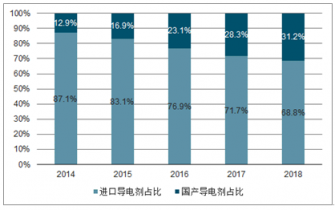 2014-2018年中國(guó)鋰電池導(dǎo)電劑國(guó)產(chǎn)化率變化情況