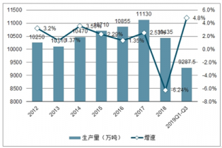 2012-2019Q1-Q3 全國紙及紙板生產(chǎn)量及增速趨勢