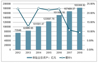 2012-2018年中國保險業(yè)總資產(chǎn)及增長情況
