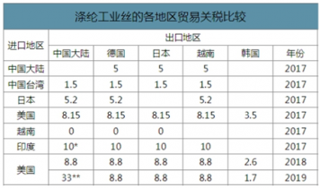 滌綸工業(yè)絲的各地區(qū)貿(mào)易關(guān)稅比較
