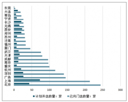 截至2018年12月中旬,瑞幸咖啡在全國22 座城市門店數(shù)量接近1650 家,門店數(shù)量是2 月份60 家的28 倍。其中,北京、上海、廣州、深圳、杭州和重慶六大城市的已有門店數(shù)量超過100家。預(yù)計(jì)2018 年,瑞幸咖啡門店將達(dá)到2000 家。