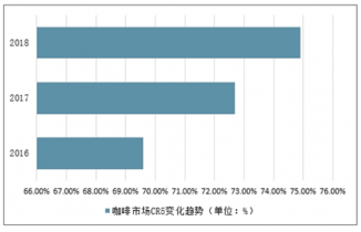 2018年我國咖啡市場集中度較高,2018年橫向?qū)Ρ葒猓覈Х仁袌鯟R5達(dá)到74.9%。在我國現(xiàn)磨咖啡市場中仍占絕對(duì)主導(dǎo)。