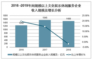 2016 -2019年間規(guī)模以上文化娛樂休閑服務(wù)企業(yè)收入規(guī)模及增長(zhǎng)分析