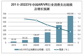 2018-2023年中國AR/VR行業(yè)消費支出規(guī)模及增長預測