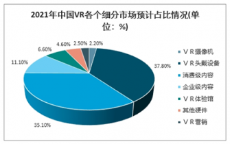 2021年中國VR各個細分市場預計占比情況(單位:%)