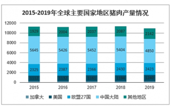 2015-2019年全球主要國(guó)家地區(qū)豬肉產(chǎn)量情況