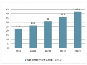 當(dāng)前,人類社會正處于金融創(chuàng)新的活躍期,加之互聯(lián)網(wǎng)向各個行業(yè)不斷沖擊滲透, 預(yù)計2018年我國互聯(lián)網(wǎng)金融行業(yè)市場規(guī)模將達到22.3萬億元,未來五年(2018-2022)年均復(fù)合增長率約為17.36%,預(yù)計到了2022年我國互聯(lián)網(wǎng)金融行業(yè)市場規(guī)模將達到42.3萬億元。