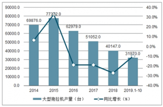 2019年1-10月中國大型拖拉機(jī)產(chǎn)量及增速統(tǒng)計表