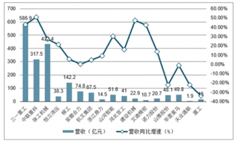 2019年前三季度工程機(jī)械行業(yè)各企業(yè)營(yíng)收狀況(億元,%)