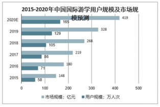 2015-2020年中國國際游學(xué)用戶規(guī)模及市場規(guī)模預(yù)測