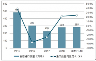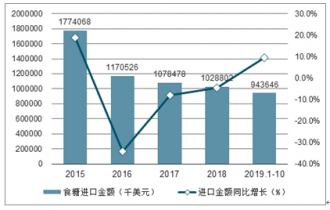 2019年1-10月中國食糖進(jìn)口數(shù)量為285萬噸,同比增長24.4%;2019年1-10月中國食糖進(jìn)口金額為943646千美元,同比增長9.5%。