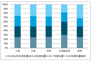 截至2019年4月底,全國全口徑發(fā)電機(jī)裝機(jī)容量為19.15億千瓦,火電裝機(jī)容量為11.48億千瓦,目前結(jié)構(gòu)占比59.98%,相較于2015年的64.9%,下降了接近5個百分點(diǎn);水電裝機(jī)容量為3.5億千瓦,目前結(jié)構(gòu)占比18.27%,相較于2015年的20.9%,下降了2.6個百分點(diǎn);風(fēng)電裝機(jī)容量為1.9億千瓦,目前結(jié)構(gòu)占比9.93%,相較于2015年的8.5%,上升了1.43個百分點(diǎn);太陽能發(fā)電裝機(jī)容量為1.8億千瓦,目前結(jié)構(gòu)占比9.43%,相較于2015年的2.8%,上升了6.63個百分點(diǎn);核電裝機(jī)容量為0.46億千瓦,目前結(jié)構(gòu)占比2.9%,相較于2015年的1.7%,上升了1.2的百分點(diǎn)。