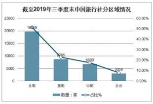 截至2019年三季度末中國(guó)旅行社分區(qū)域情況
