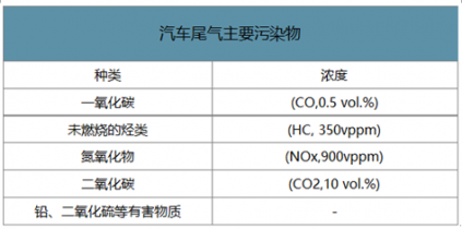 隨著汽車保有量的增加,汽車尾氣已經(jīng)成為影響全球環(huán)境的重要因素,各國對(duì)汽車尾氣的處理日益重視。汽車尾氣的主要成分包括一氧化碳、未燃燒的烴類、氮氧化合物、二氧化碳、鉛、二氧化硫等有害物質(zhì)。