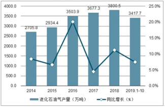 2019年1-10月中國(guó)液化石油氣產(chǎn)量及增速統(tǒng)計(jì)表