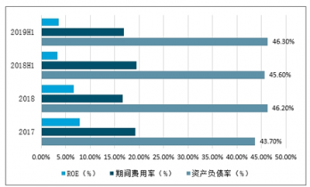 2017-2019年H1二次設(shè)備行業(yè)資產(chǎn)負(fù)債率、ROE及期間費用率