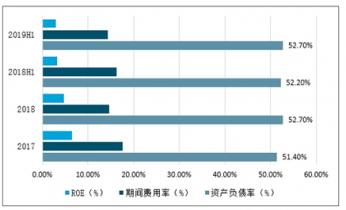 2017-2019年H1一次設(shè)備行業(yè)資產(chǎn)負債率、ROE及期間費用率