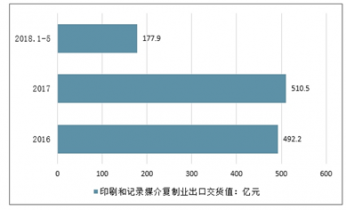 2016-2018年1-5月我國(guó)印刷和記錄媒介復(fù)制業(yè)所屬行業(yè)出口交貨值