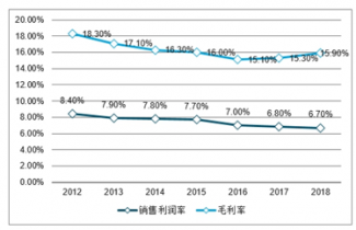 2012-2018年中國印刷業(yè)銷售利潤率及毛利率走勢
