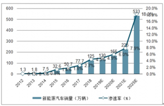 國內新能源汽車銷量及預測(萬輛)