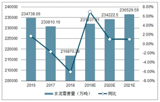 2016-2021年水泥需要量及同比預(yù)測