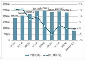 2010-2018年中國水泥產(chǎn)量及增長走勢