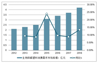2012-2018年中國(guó)生物降解塑料消費(fèi)需求市場(chǎng)規(guī)模及增長(zhǎng)走勢(shì)